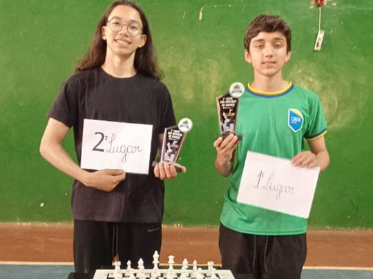 Representando Araxá, os alunos da Academia Araxaense de Xadrez, MN (Mestre Nacional) Edgard Nascimento de Souza Suzuki e Théo Borges Ribeiro, que poderiam disputar a categoria Sub-16, optaram por encarar o desafio de jogar diretamente na categoria Geral. A decisão ousada rendeu frutos: ao término das rodadas, os dois jovens conquistaram uma dobradinha histórica para Araxá.